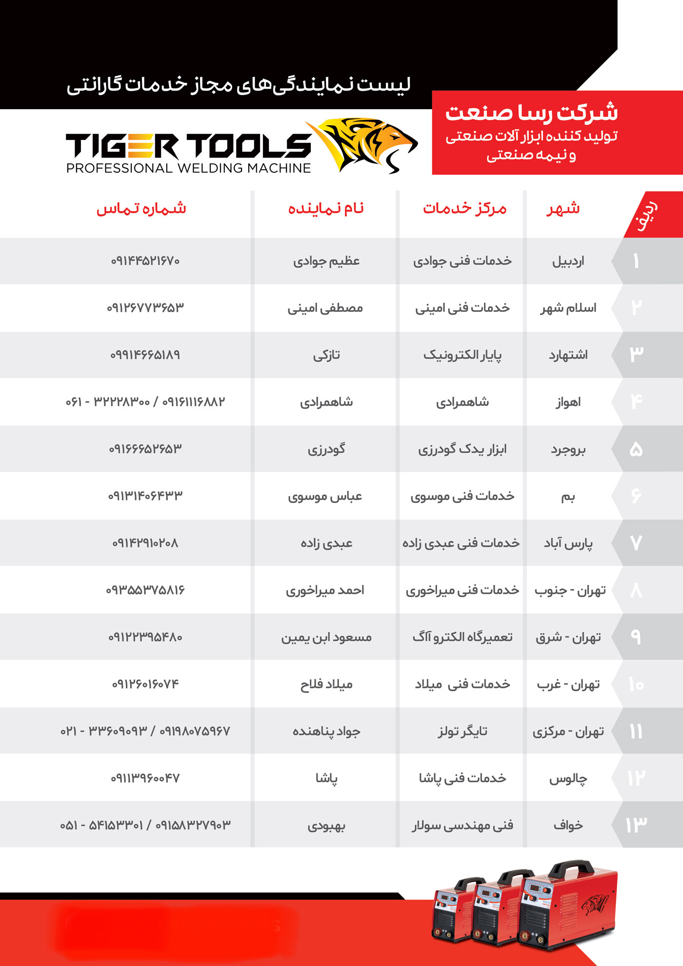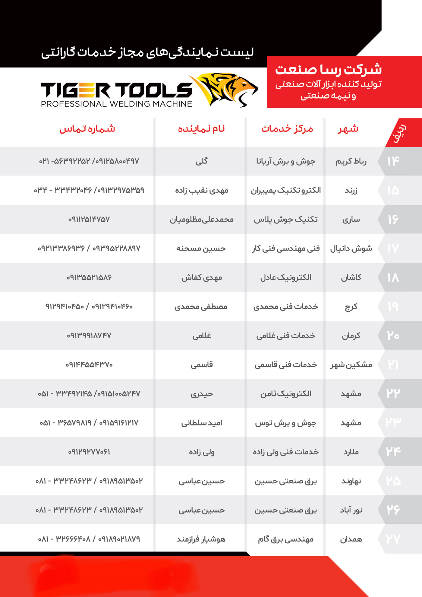 جهت ارتباط با واحد خدمات پس از فروش محصولات تایگر تولز با شماره 39090633120 تماس حاصل فرمایید